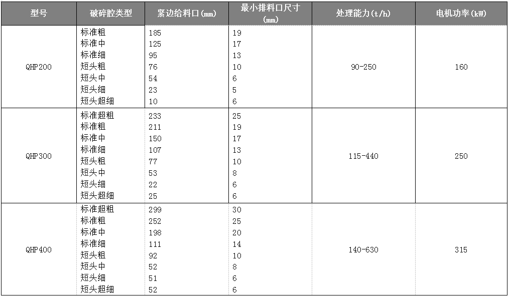 仅需更换衬板等相关件便可使腔型转换,满足 中碎和细碎要求。